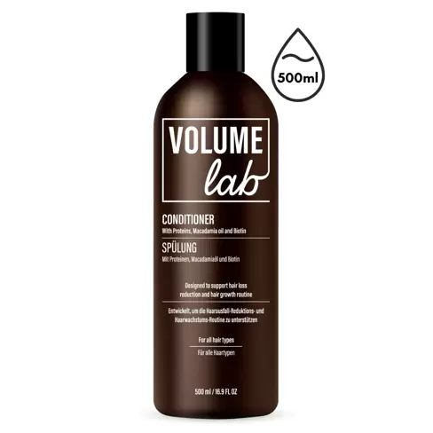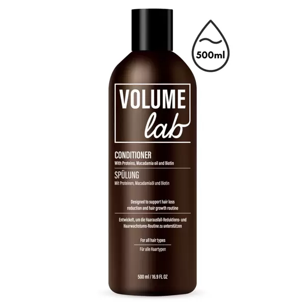 Kondicionér VOLUME LAB (500 ml): Používejte po šamponu VOLUME LAB. Aplikujte na vlhké vlasy. Nechte působit 5 minut pro uzavření vlasových kutikul a opláchněte.